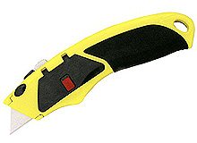 Но надежность этого вида очень низкая: при нажиме на лезвие оно со временем прорезает корпус и работать с таким ножом становится небезопасно, использовать его можно при небольших объемах работ