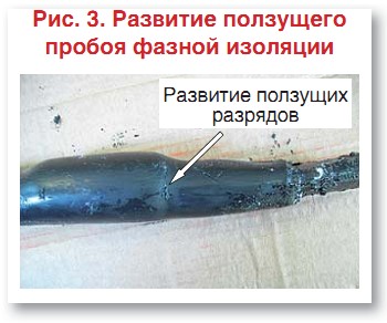 Так, например, в концевых муфтах развиваются частичные разряды в месте развилки перчатки между фазами, затем происходит развитие ползущих разрядов с повреждением изоляции одной из фаз и перекрытие по поверхности фазы на оболочку кабеля.