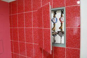 Перед тем, как закрывать инженерные системы в ванной комнате или туалете, в первую очередь нужно убедиться в том, что выбранные коммуникации должны быть в свободном доступе. К примеру, счетчики горячего водоснабжения или место резьбового соединения, в котором вероятность возникновения протечки максимальна.
